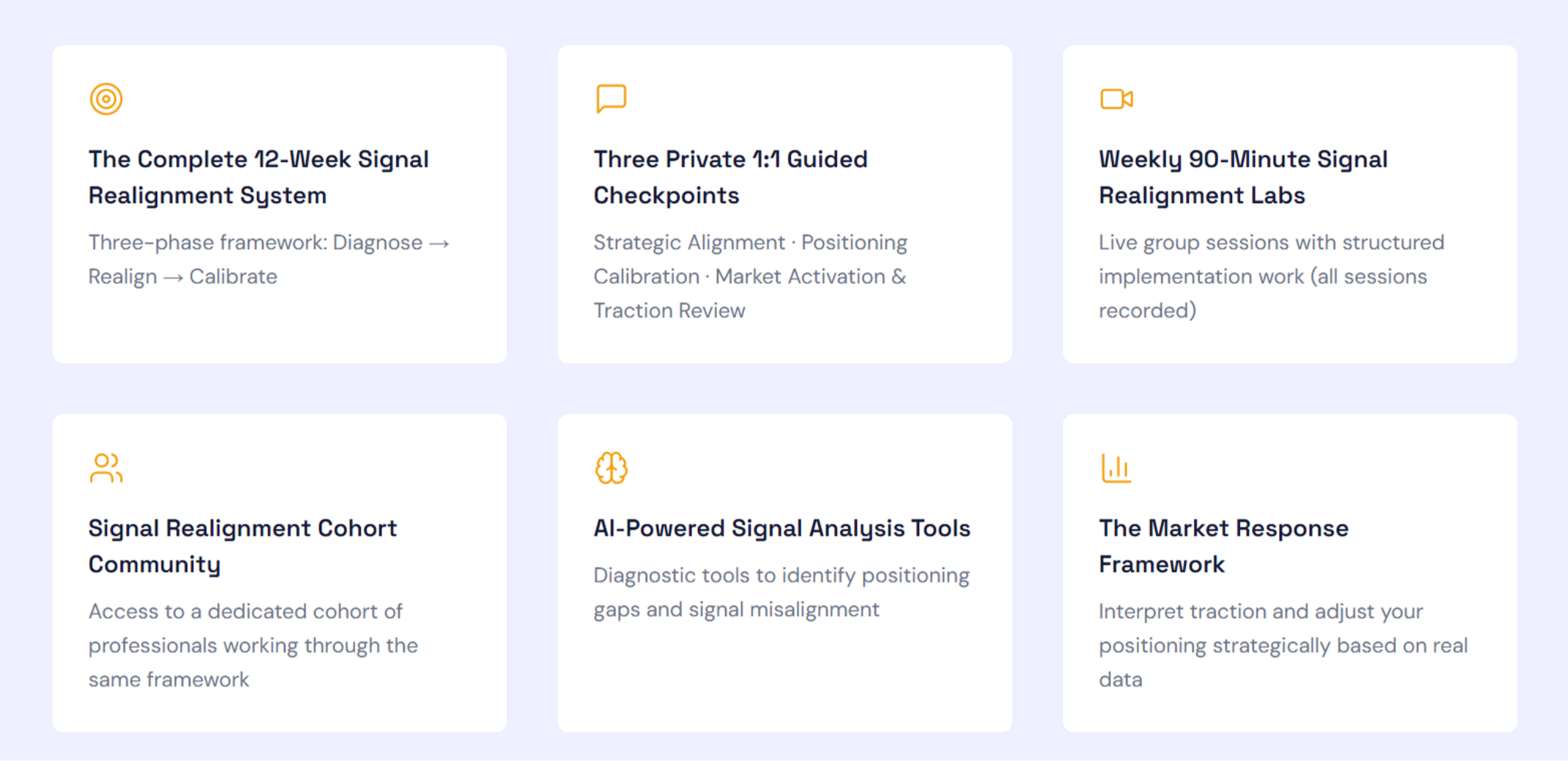 The Signal Realignment System is a structured 12-week implementation experience designed to recalibrate how the market interprets your value.