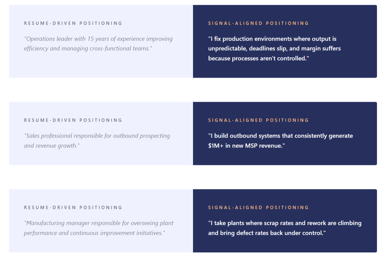 02 Realign Reposition your resume, LinkedIn, outreach, and narrative around that problem.